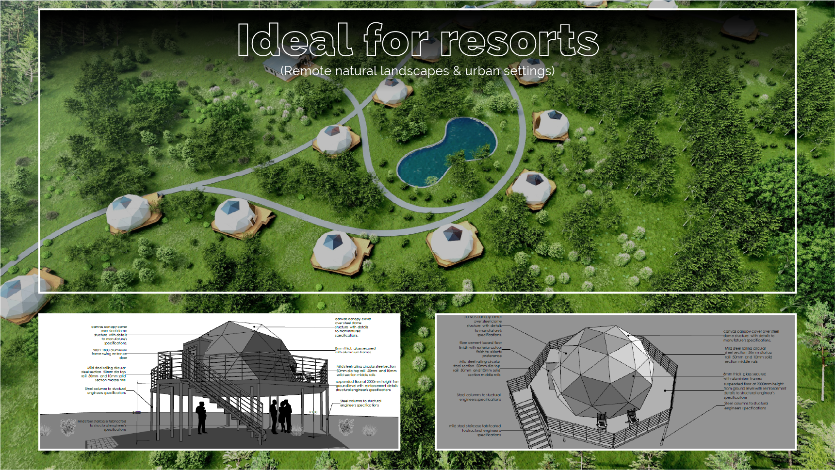 Fast assembly – Thanks to their modular design, domes can be assembled rapidly, even in challenging locations. This makes them ideal for eco-resorts, pop-up lodges, or anyone seeking to create a unique travel experience without long build times or environmental disruption.
