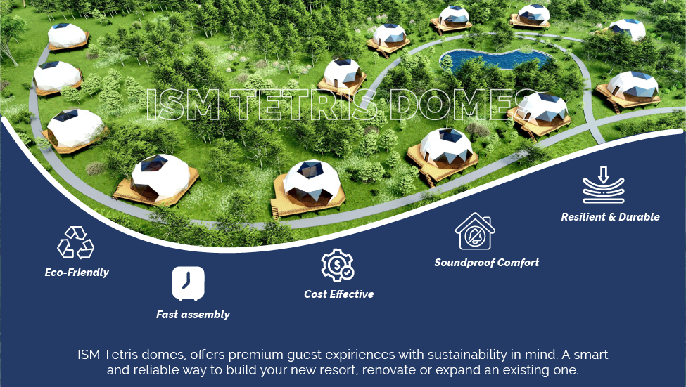 In a world where guest expectations are evolving, it is essential to think outside the box. Guests crave unique, immersive, and sustainable experiences and what better way to offer this than the ISM Tetris Domes. ISM Tetris Domes is introducing a bold new way to build unforgettable resort experiences.