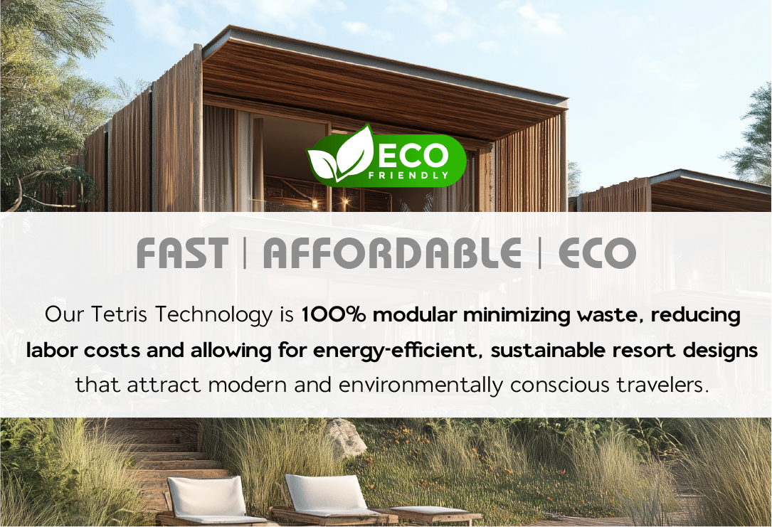 - Cost-Effective & Eco-Friendly – Modular structures minimize waste, reduce labor costs and allow for energy-efficient, sustainable resort designs that attract modern and environmentally conscious travelers.