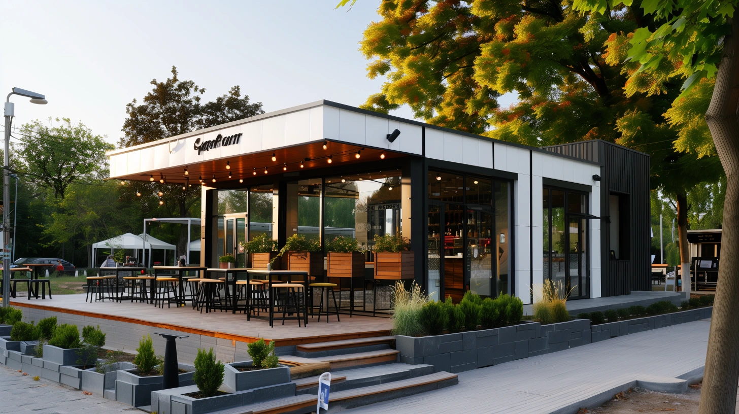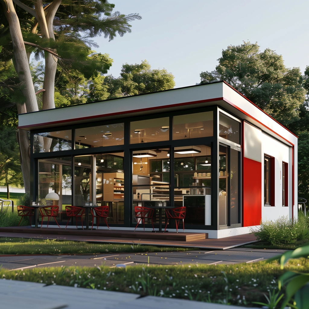 Our modular system provides complete design flexibility, supporting a wide range of hospitality applications — from compact kiosks and pop-up cafés to full-service restaurants, kitchens, and multi-level entertainment venues. Modules can be configured and connected to accommodate various layouts, including dining areas, commercial kitchens, storage, service zones, and customer amenities.