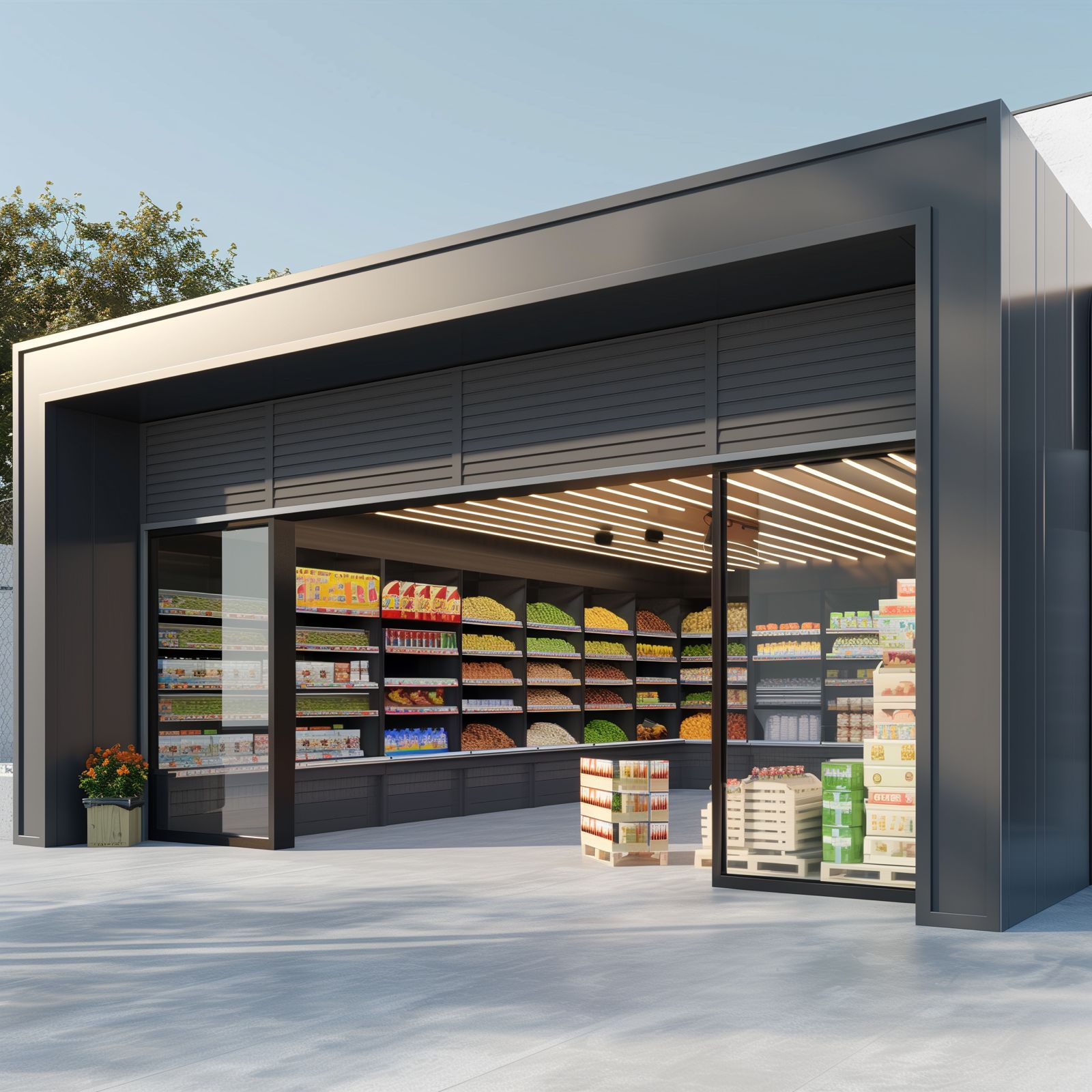 Our modular system offers exceptional flexibility and scalability, enabling the efficient construction of facilities ranging from compact retail kiosks and convenience stores to full-scale supermarkets, showrooms, and logistics hubs. Modules can be configured, expanded, or reconfigured to accommodate changing floor layouts, product categories, or customer flow requirements — providing long-term adaptability for dynamic retail environments.